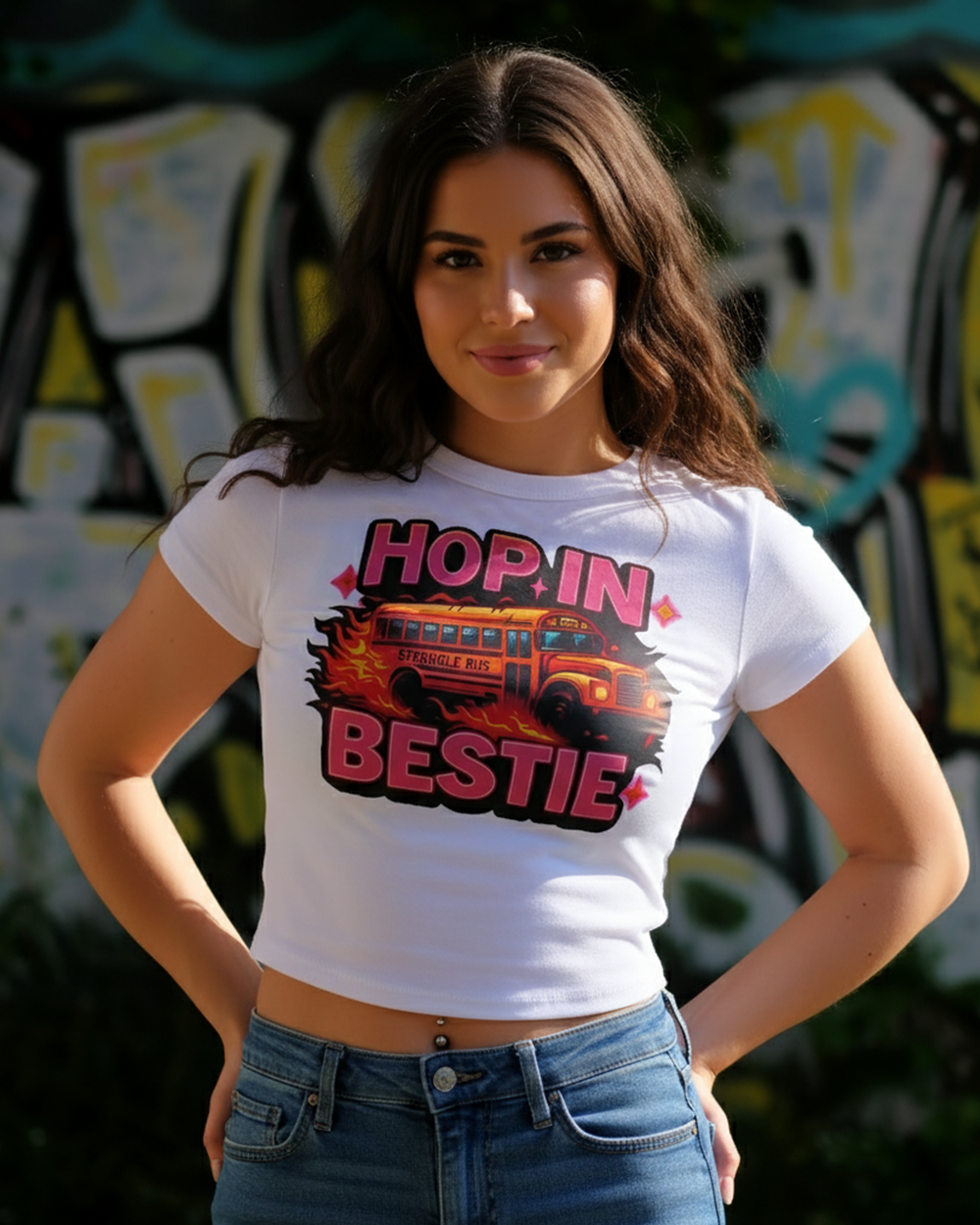 💬 The “Hop in, Bestie — we’re all on the struggle bus” graphic keeps things cute, cozy, and 100% relatable. Because yeah… same.