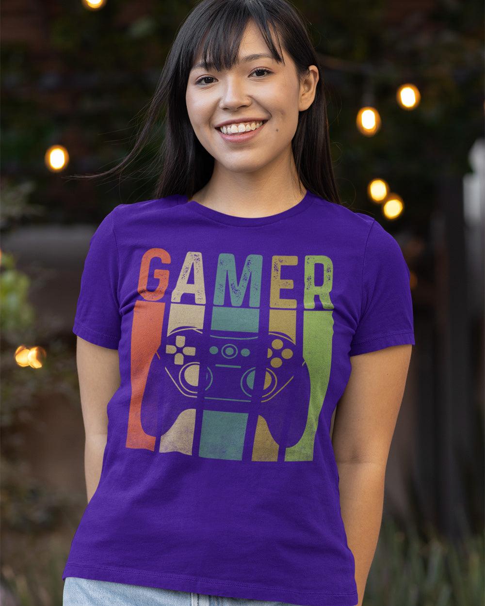 Calling all female gamers! It's time to showcase your passion for pixels and power-ups with our colorful Gamer t-shirt. Whether you're a casual mobile gamer or a hardcore console queen, this tee is designed to level up your wardrobe. Crafted from premium 100% cotton, this shirt offers unbeatable comfort for those marathon gaming sessions or everyday wear. The breathable fabric keeps you cool while you're racking up high scores or just hanging out.Choose your perfect fit: