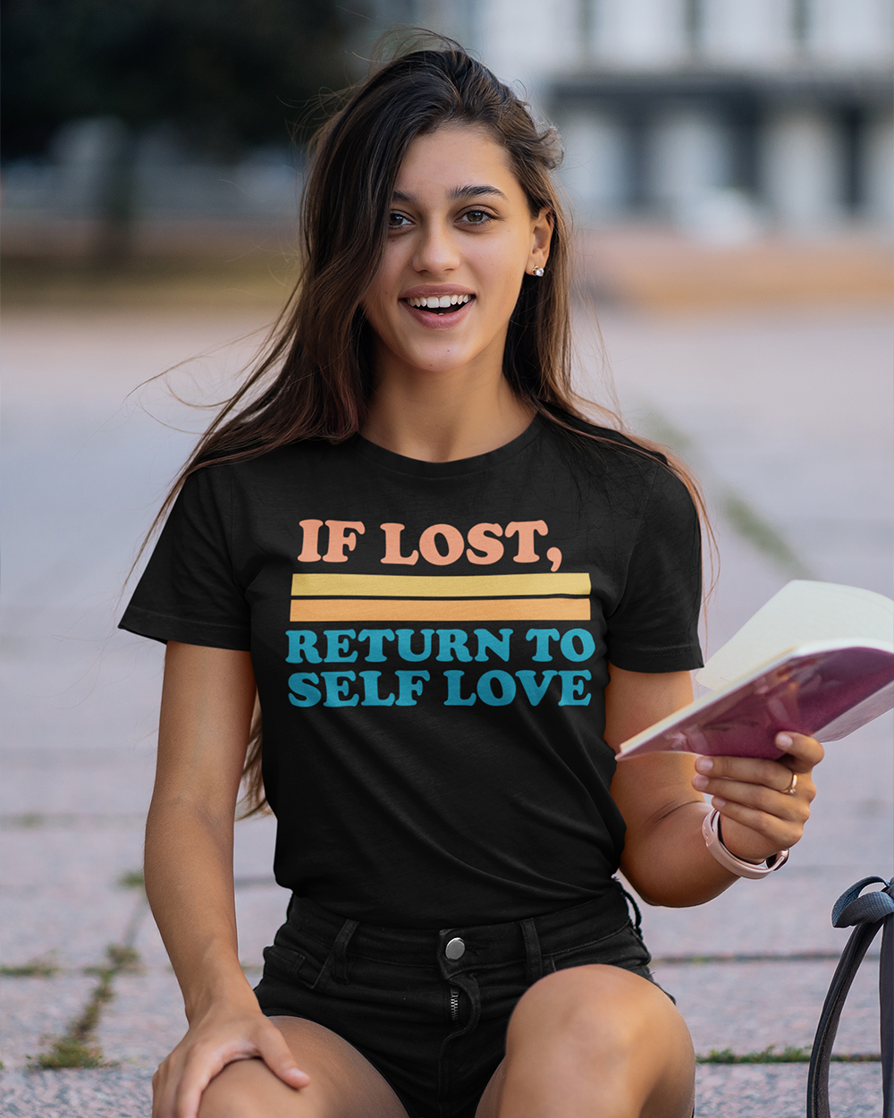 This custom printed women's t-shirt features the bold and inspiring message “If Lost Return to Self Love” in eye-catching graphics that speak to the heart. Whether you're embracing your journey or gifting encouragement to someone special, this tee is more than just apparel—it's a daily affirmation.