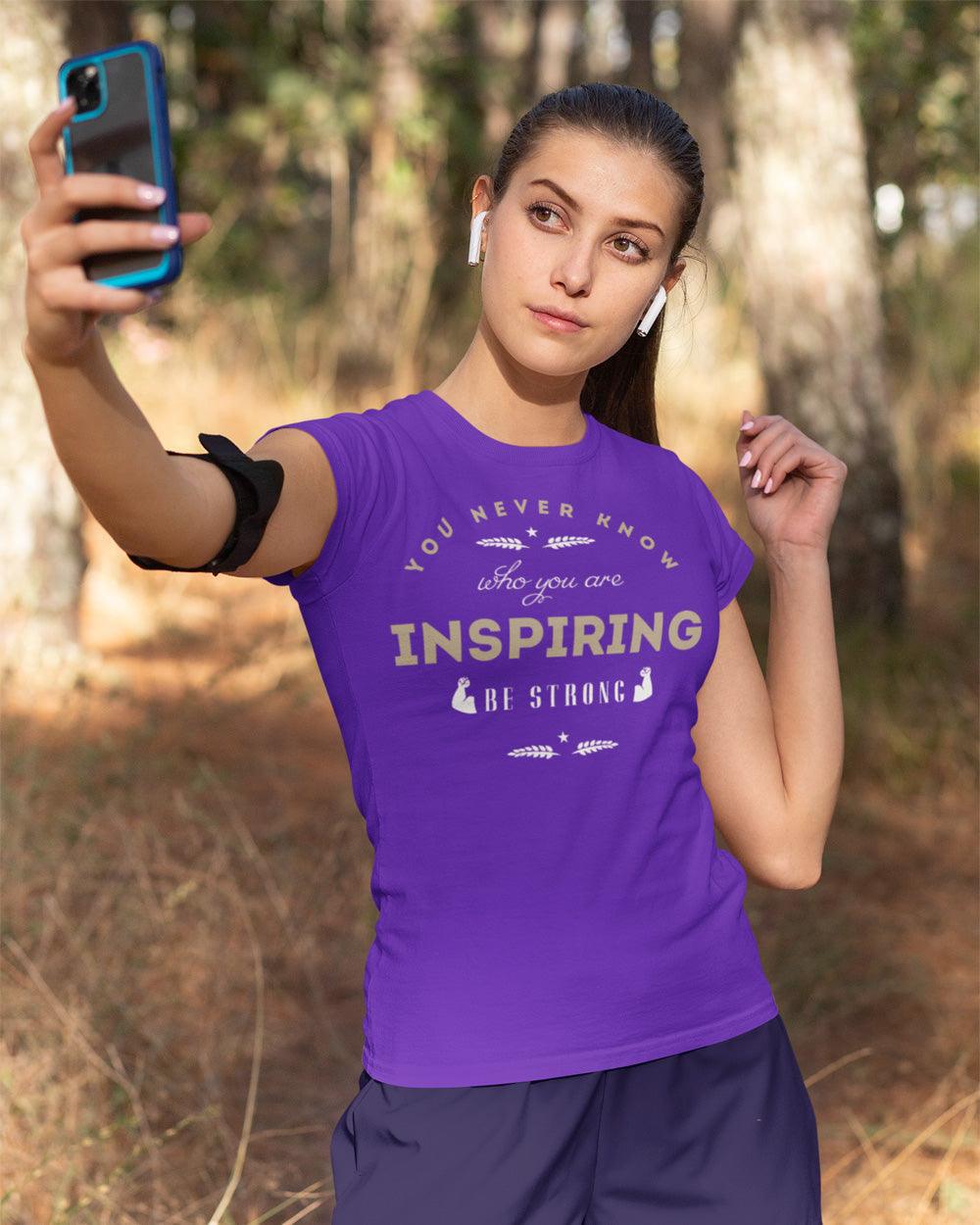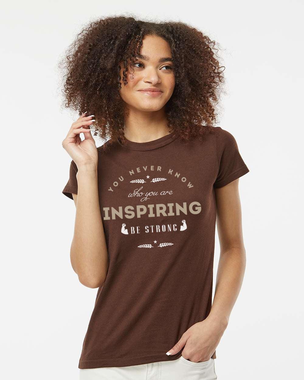 Make a statement and spread positivity with our custom-designed women's t-shirt featuring the powerful message: "You Never Know Who You Are Inspiring Be Strong." This eye-catching tee is perfect for those who want to motivate themselves and others with a simple yet impactful reminder.